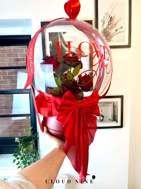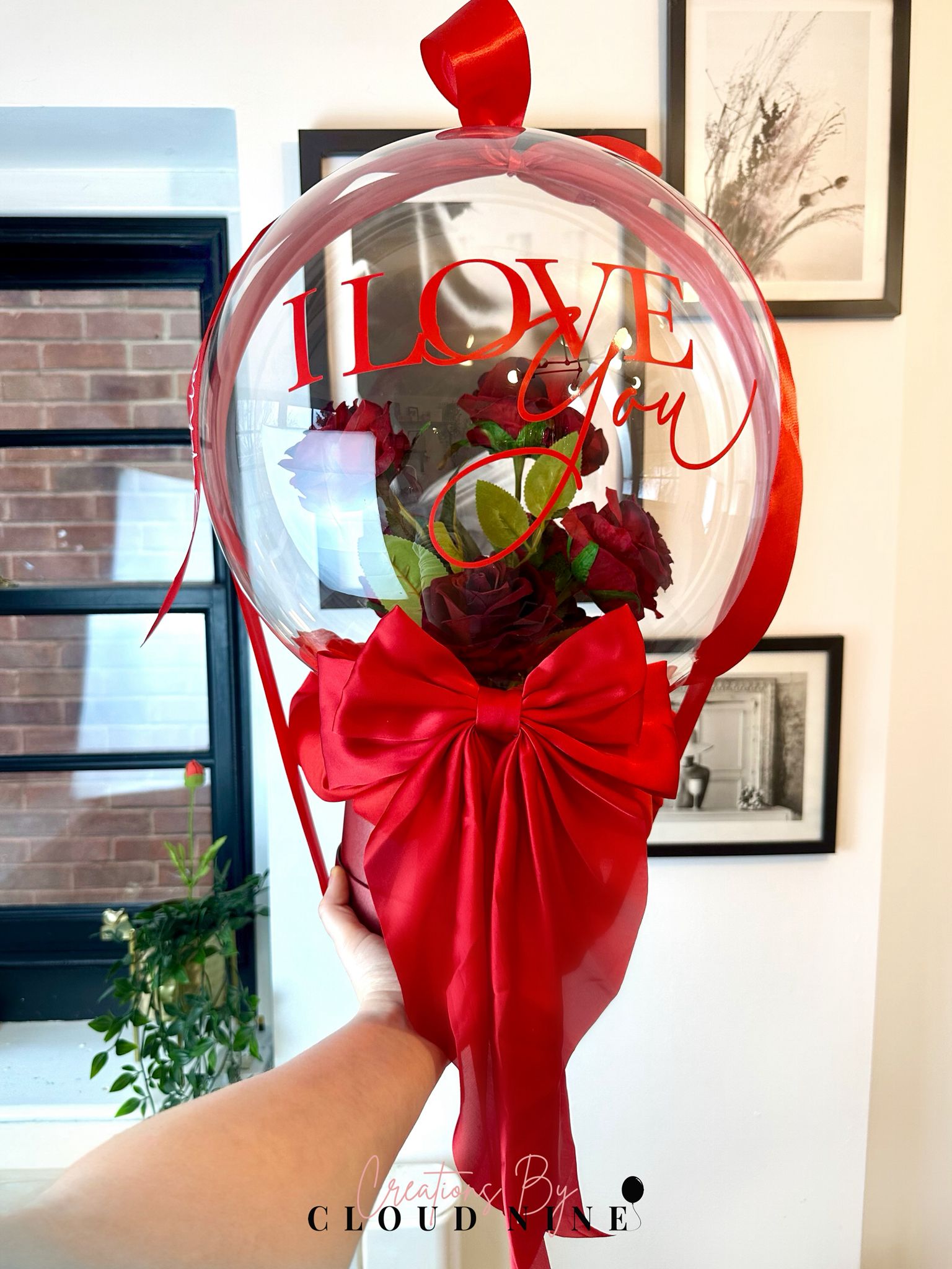 Elevate your Valentine’s celebration with our Valentine’s Bubble Box — a crystal-clear bubble balloon filled with artificial flowers, rose petals, personalisation & beautifully presented in a stylish box and finished with a luxury satin ribbon bow.